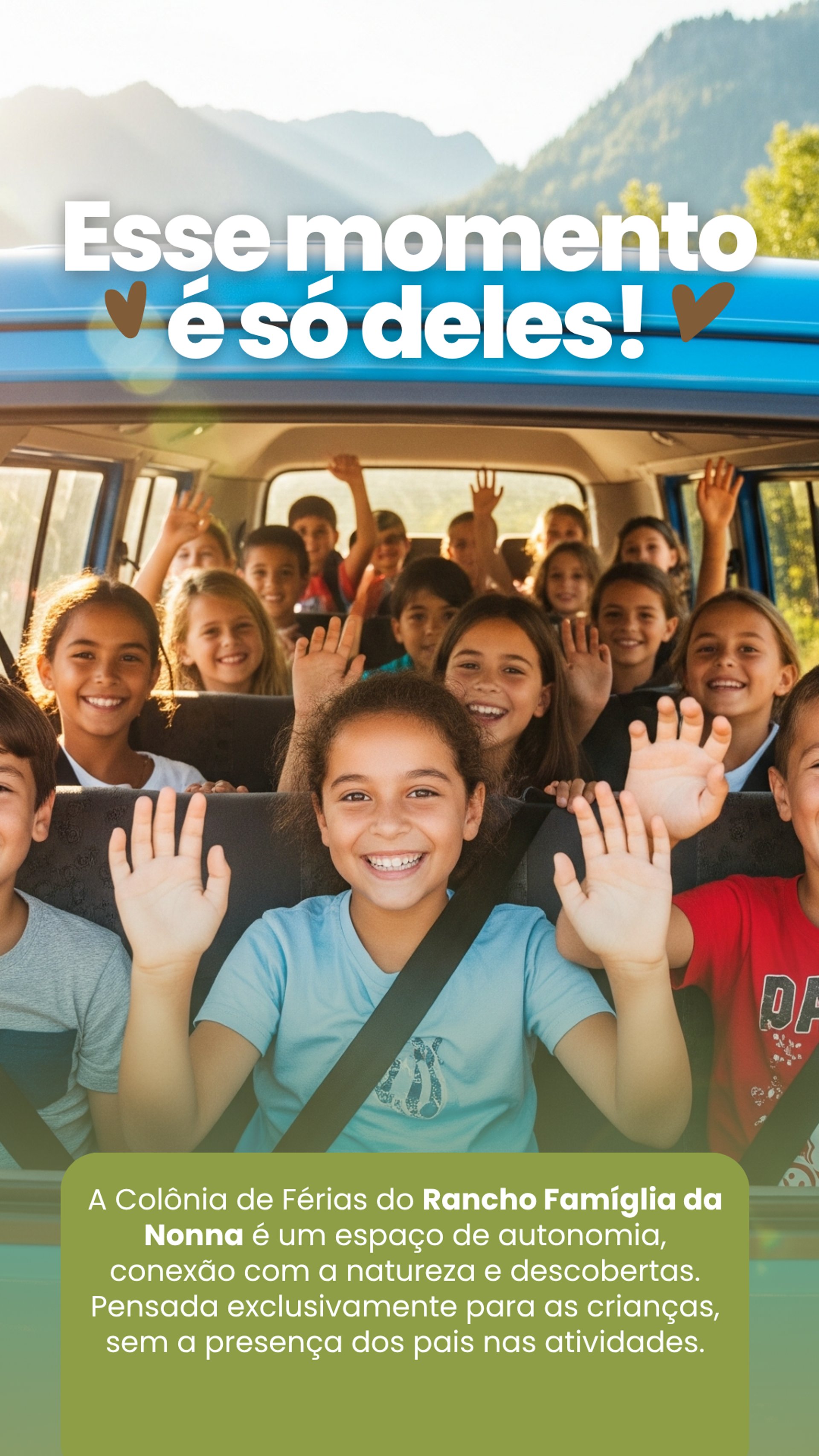 Esta não é apenas mais uma colônia de férias. É um investimento no desenvolvimento, na felicidade e nas futuras memórias do seu filho. É a chance de dar a ele uma história incrível para contar nas férias, uma semana que irá fortalecer sua autoconfiança, sua criatividade e sua conexão com o mundo real. Uma pausa da rotina digital para respirar ar puro, fazer novos amigos e aprender com a natureza.
